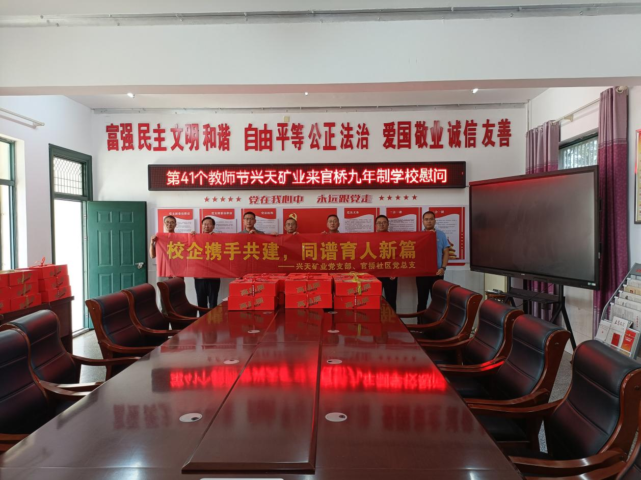 9月10日,興天礦業(yè)黨支部聯(lián)合官橋社區(qū)黨總支前往諭興九年制學(xué)校、官橋九年制學(xué)校,開(kāi)展教師節(jié)慰問(wèn)活動(dòng),向辛勤耕耘在教育一線的教師們致以節(jié)日問(wèn)候和崇高敬意。