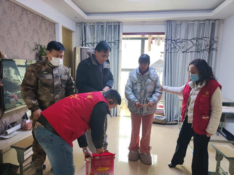 在社區(qū)有關(guān)負責同志的陪同下,慰問人員挨家挨戶對困難群體進行了走訪,為他們送去米、油等慰問品和慰問金,并詳細詢問他們的身體情況、工作和生活現(xiàn)狀,叮囑他們一定要保重身體,鼓勵他們積極面對生活困難、保持健康樂觀的心態(tài)。