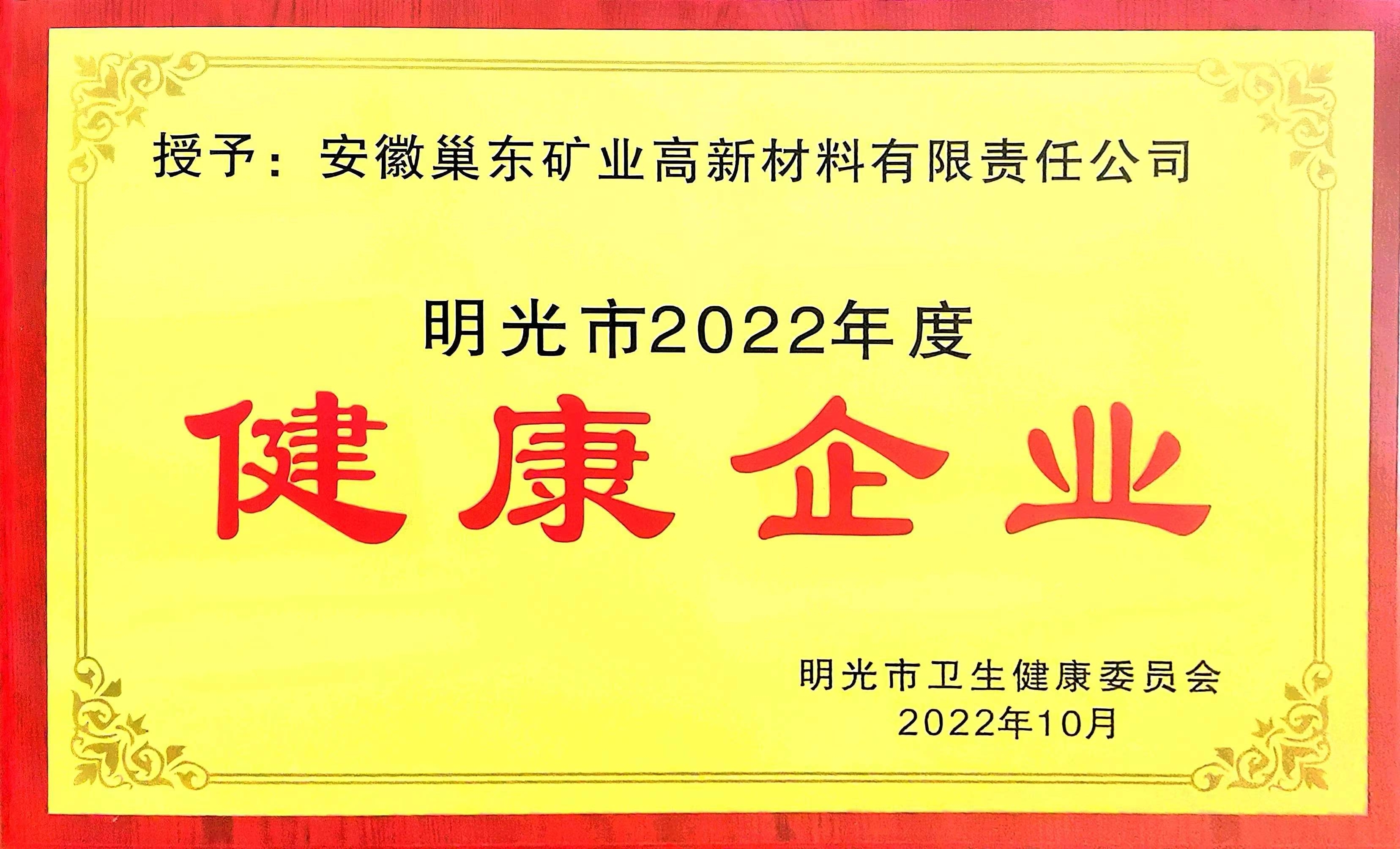 巢東礦業(yè)榮獲“2022年度明光市健康企業(yè)”榮譽(yù)稱號(hào)